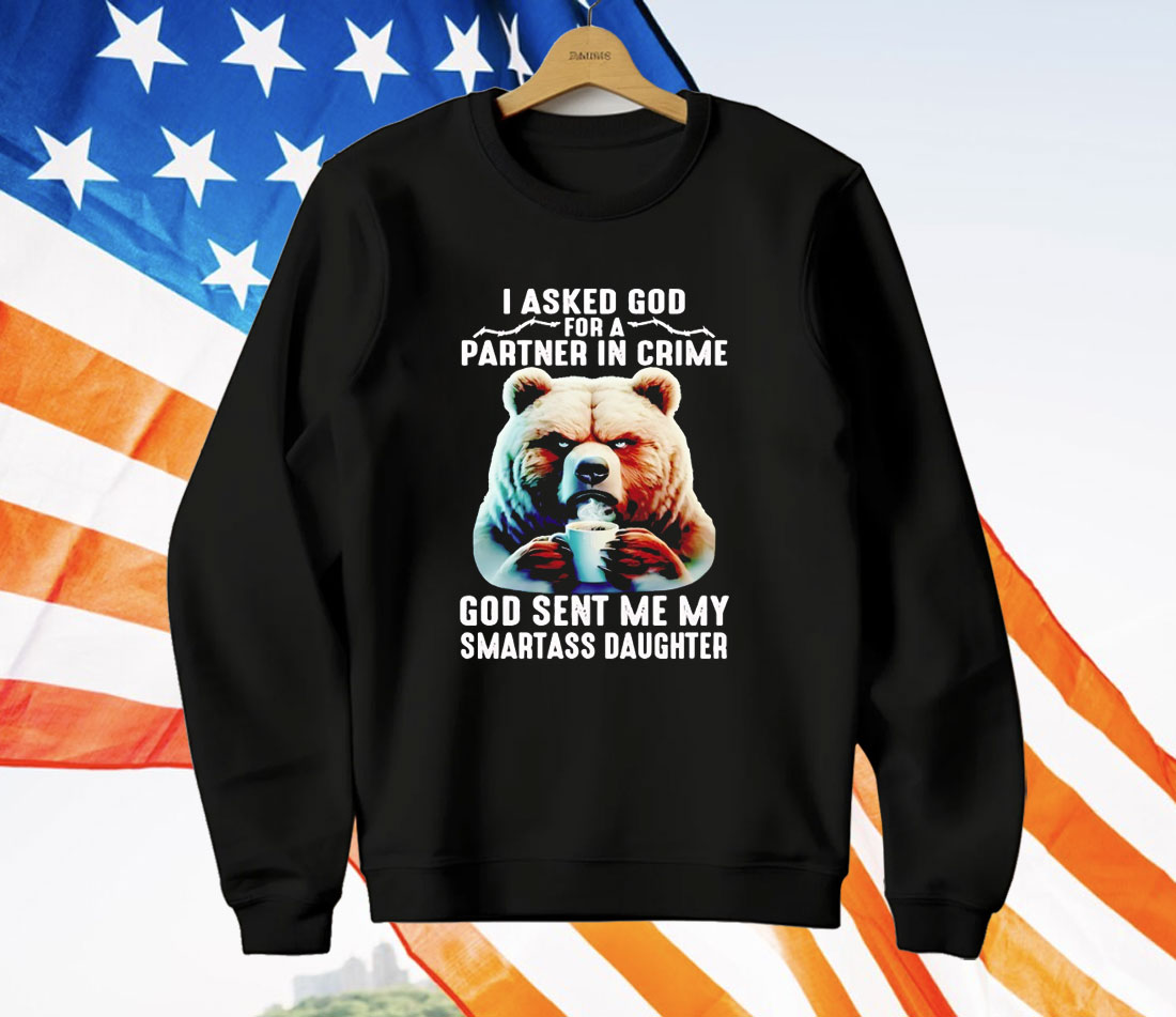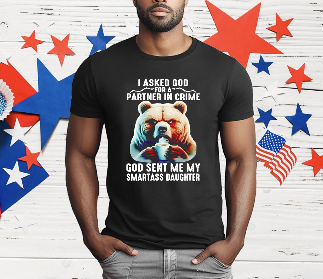 Bear I Asked God For A Partner In Crime God Smartass Daughter T-Shirt