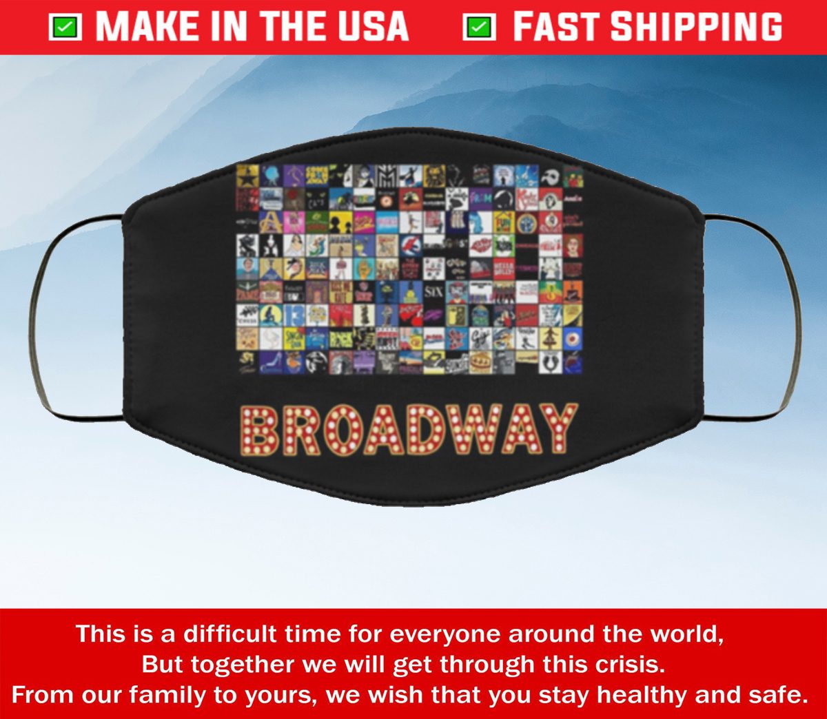 Broadway Musical Theater Logo Hand Drawn Filter Face Mask