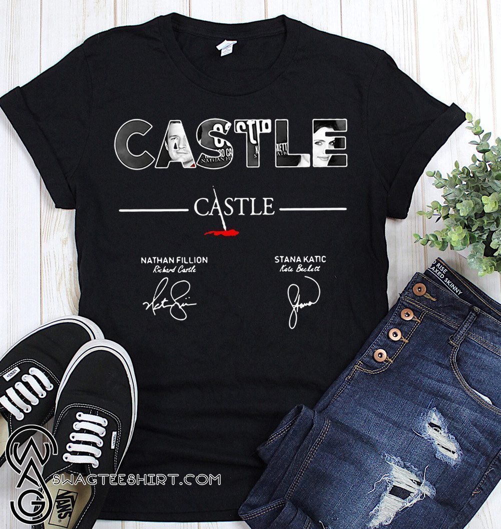 Castle nathan fillion stana katic signatures shirt