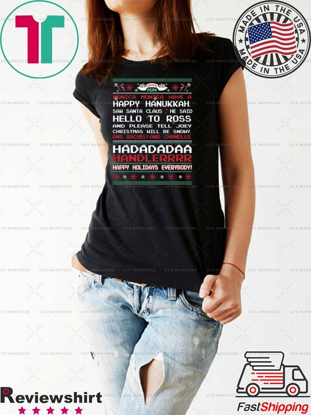 Central Perk monica monica have a happy hanukkah ugly christmas shirt