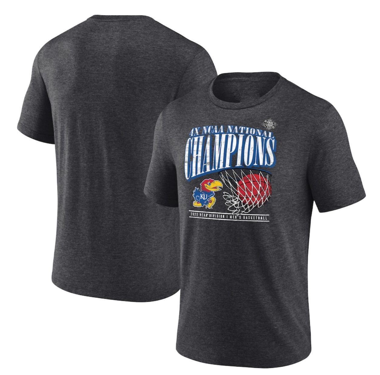 Charcoal Kansas Jayhawks 2022 NCAA Basketball National Champions Tri-Blend Shirt