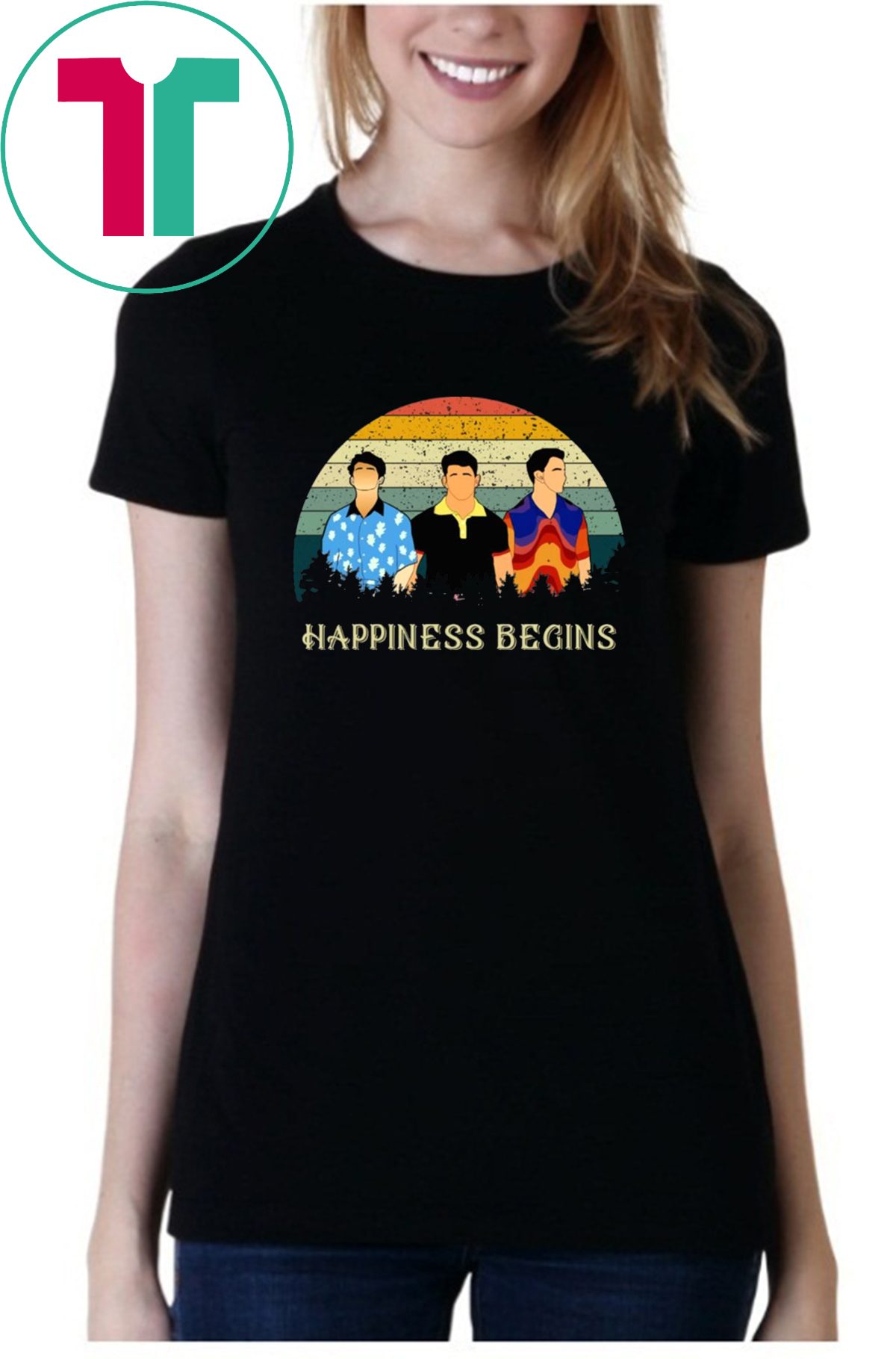 Cool Brothers Happiness Begins Vintage Shirt