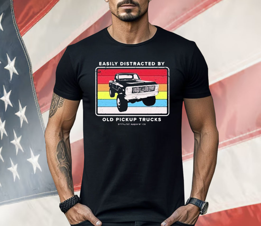 Easily Distracted By Old Pickup Trucks Old School Enthuzst Shirt