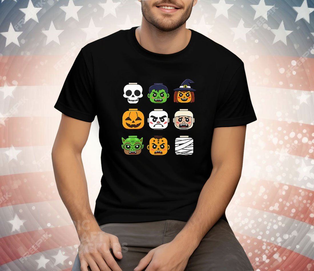 Halloween Building Brick Head Pumpkin Ghost Zombie Boys Tee Shirt