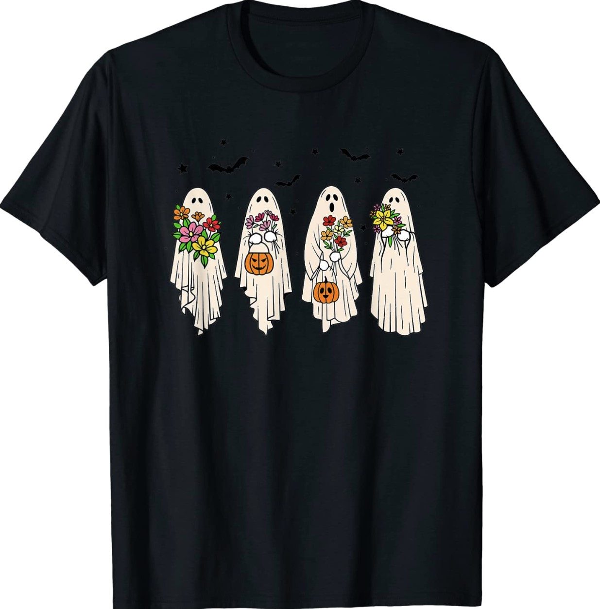Halloween Costume Vintage Floral Ghost Pumpkin Funny Graphic Shirt