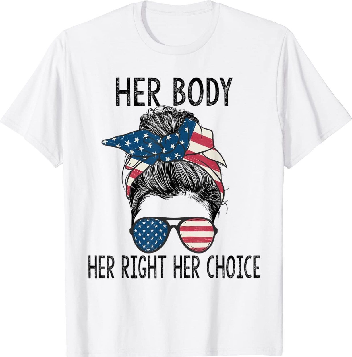 Her Body Her Right Her Choice Messy Bun US Flag Pro Choice Shirt
