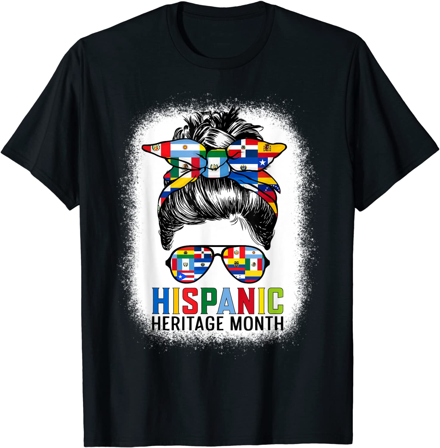 Hispanic Heritage Month Flags – Messy Bun Hispanic Women T-Shirt