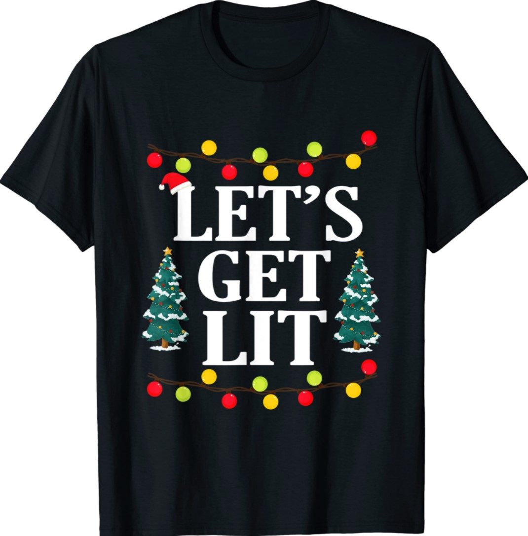 Let’s Get Lit Funny Christmas Drinking Xmas Lights Shirt