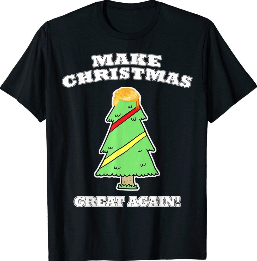 Make Christmas Great Again Tree With Decorations Trump Hair Shirt