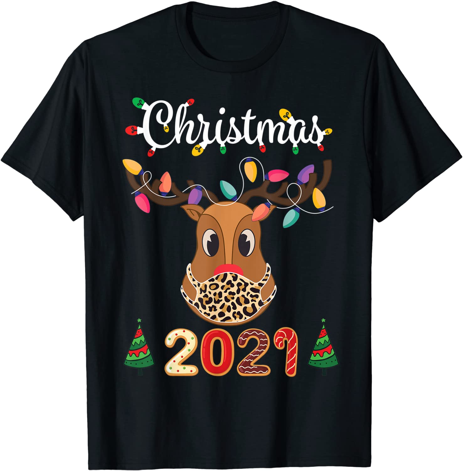 Matching Family Christmas 2021 Leopard Rudolph Reindeer Mask Gift Tee Shirt