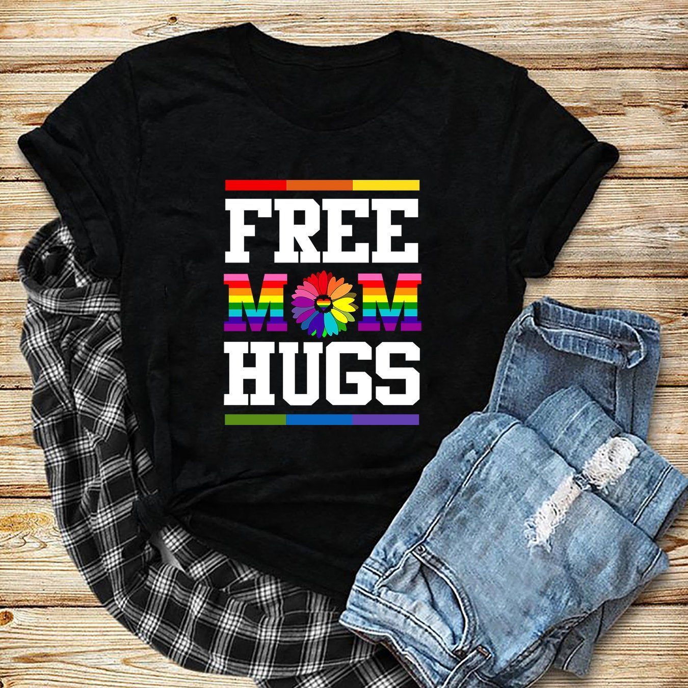 Mens Free Mom Hugs Shirt Love is Love LGBT Short Sleeve Unisex Tee Shirt