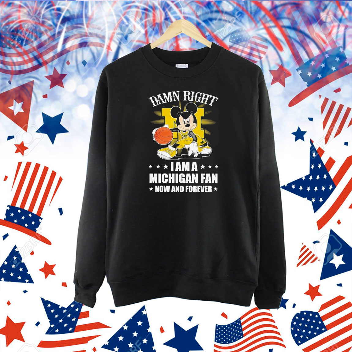 Mickey Mouse Damn Right I Am A Michigan Wolverines Fan Now And Forever Shirt