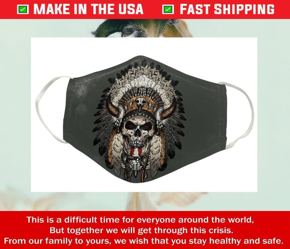 Native American Skull Gray Cotton Face Mask