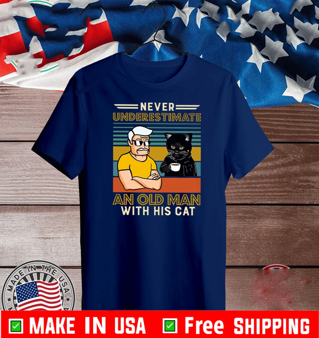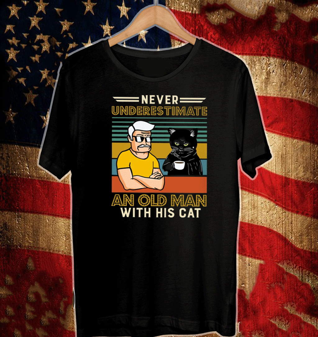 Never Underestimate And Old Man With His Tuxedo Cat Vintage T-Shirt