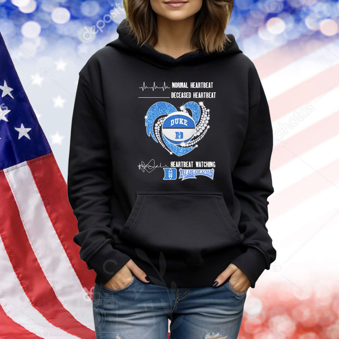 Normal Heartbeat Deceased Heartbeat Watching Duke Blue Devils Heart Diamond Shirt