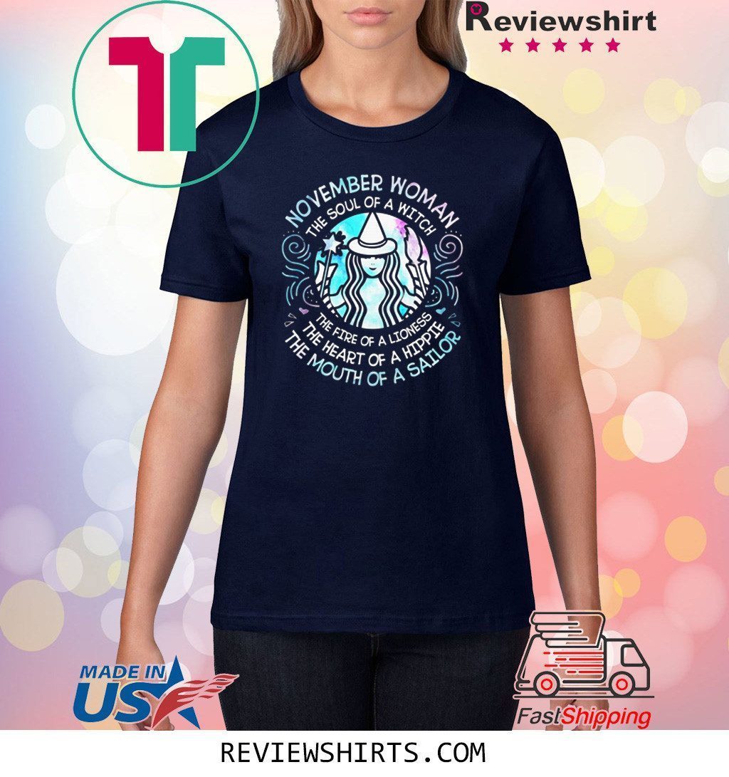 November Woman the soul of a witch the fire of a lioness the heart of a hippie the mouth of a sailor shirt