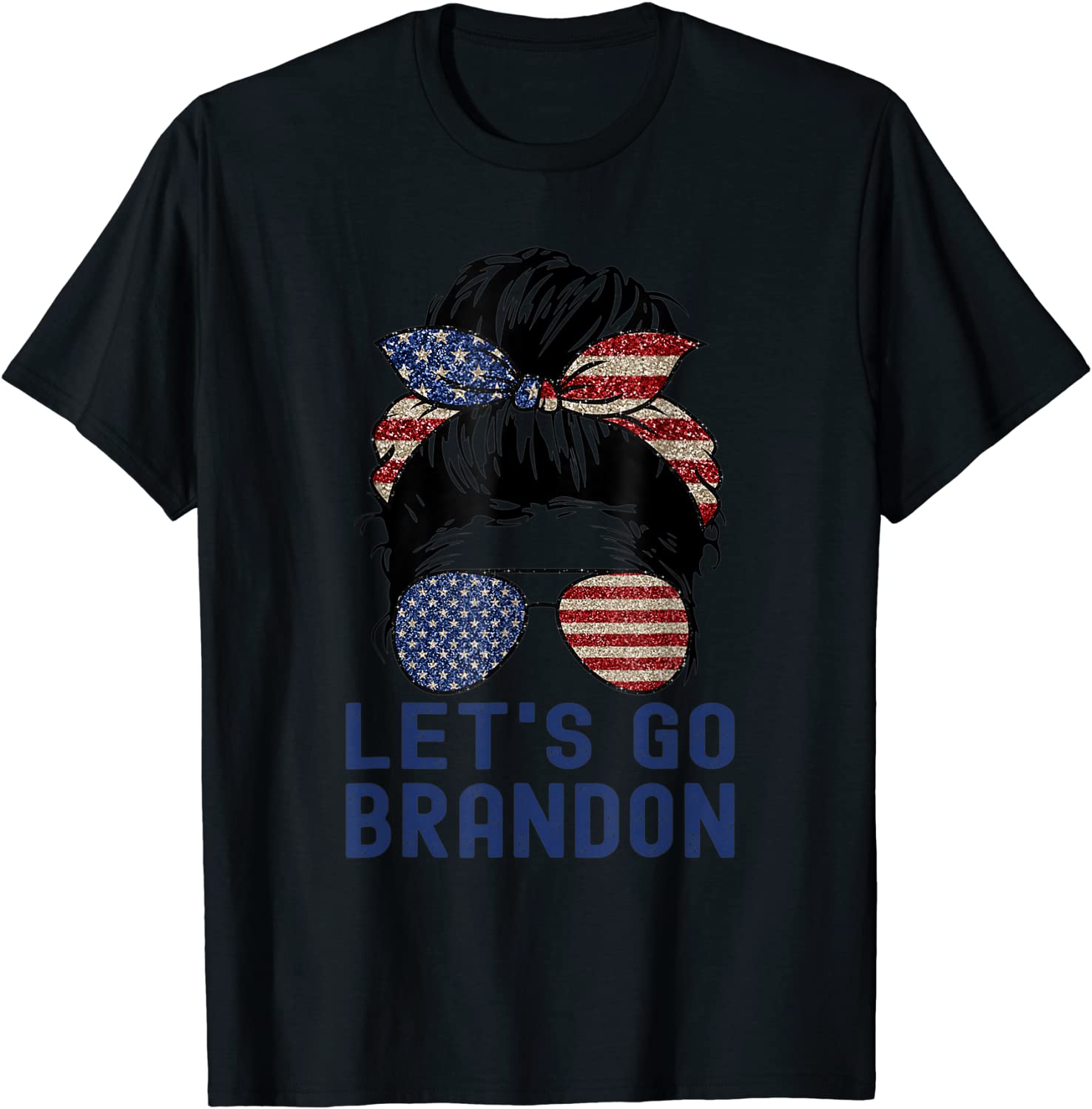 Official Let’s Go Brandon Messy Bun American Flag Sunglasses T-Shirt
