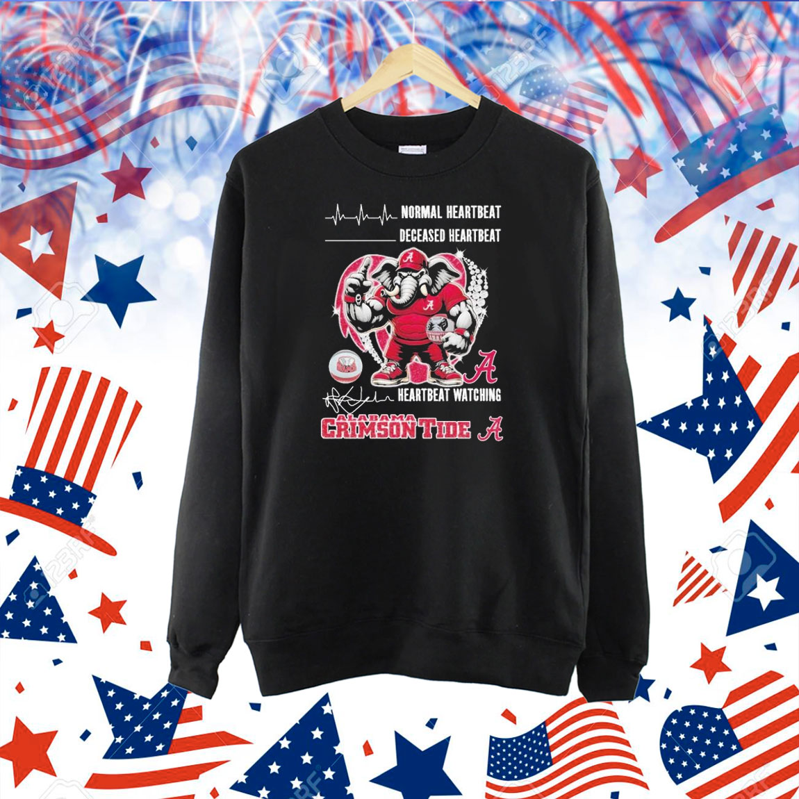 Official Normal Heartbeat Deceased Heartbeat Watching Alabama Crimson Tide Mascot Diamond Heart Shirt