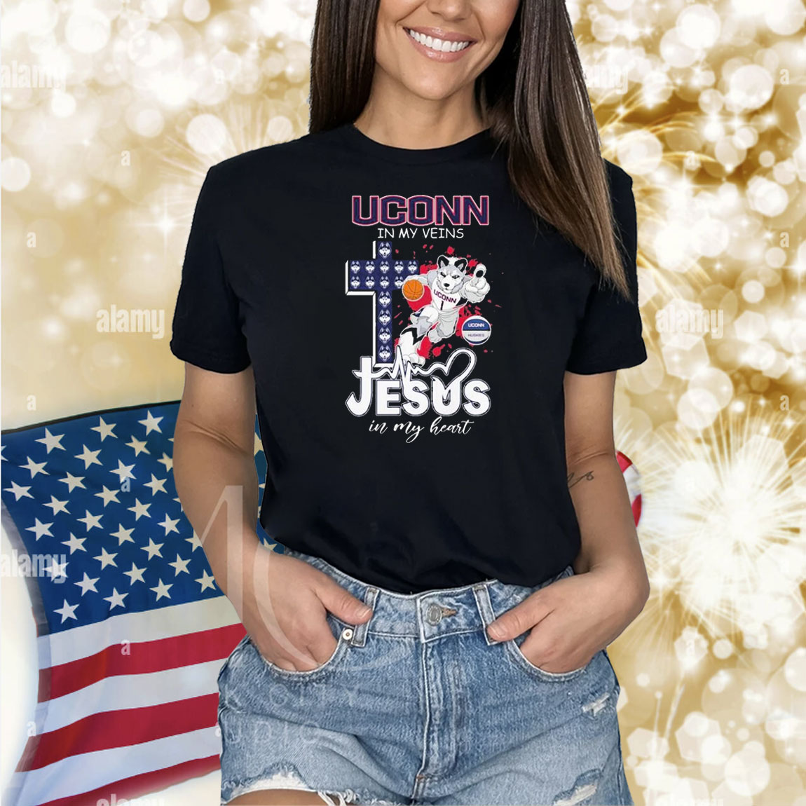 Official Uconn Huskies Basketball In My Veins Jesus In My Heart Mascot Shirt
