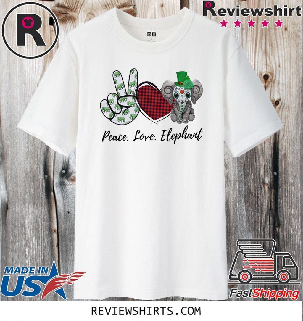 Peace Love Lucky Elephant Irish Patrick Day T-Shirt