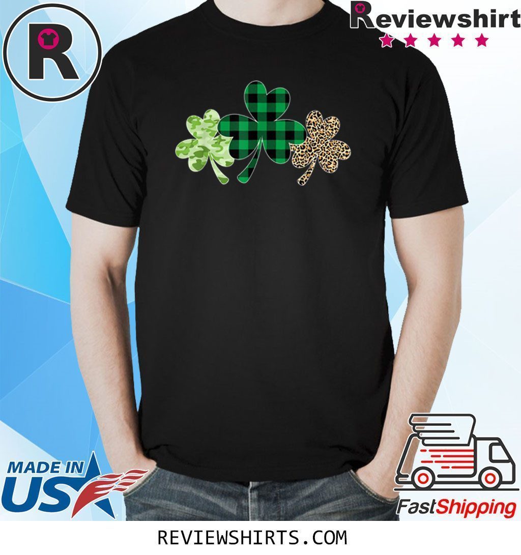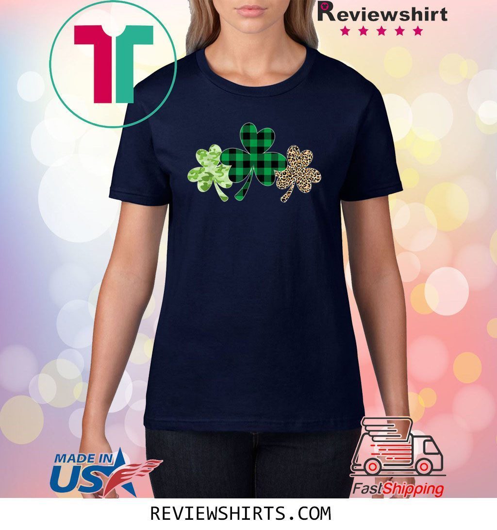 Plaid Shamrock Shirt Leopard Camouflage Fun St Patricks Day T-Shirt