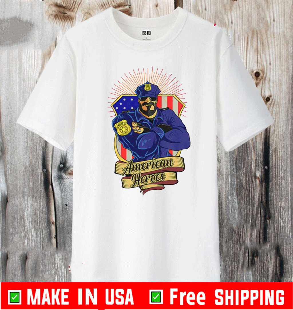 Police Man Ameican Heroes Us Flag T-Shirt