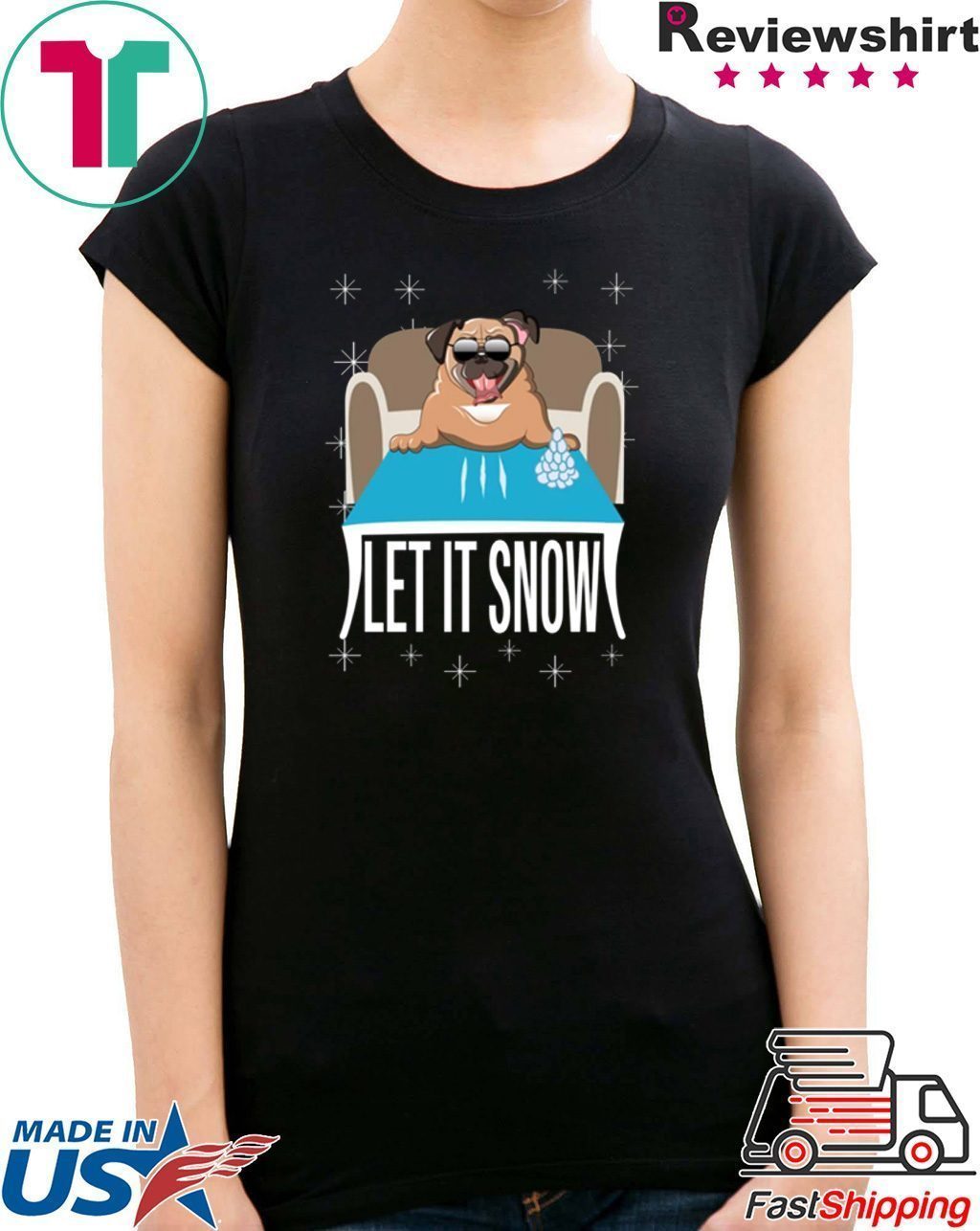 Pug Dog Walmart Cocaine Santa Let It Snow T-Shirt