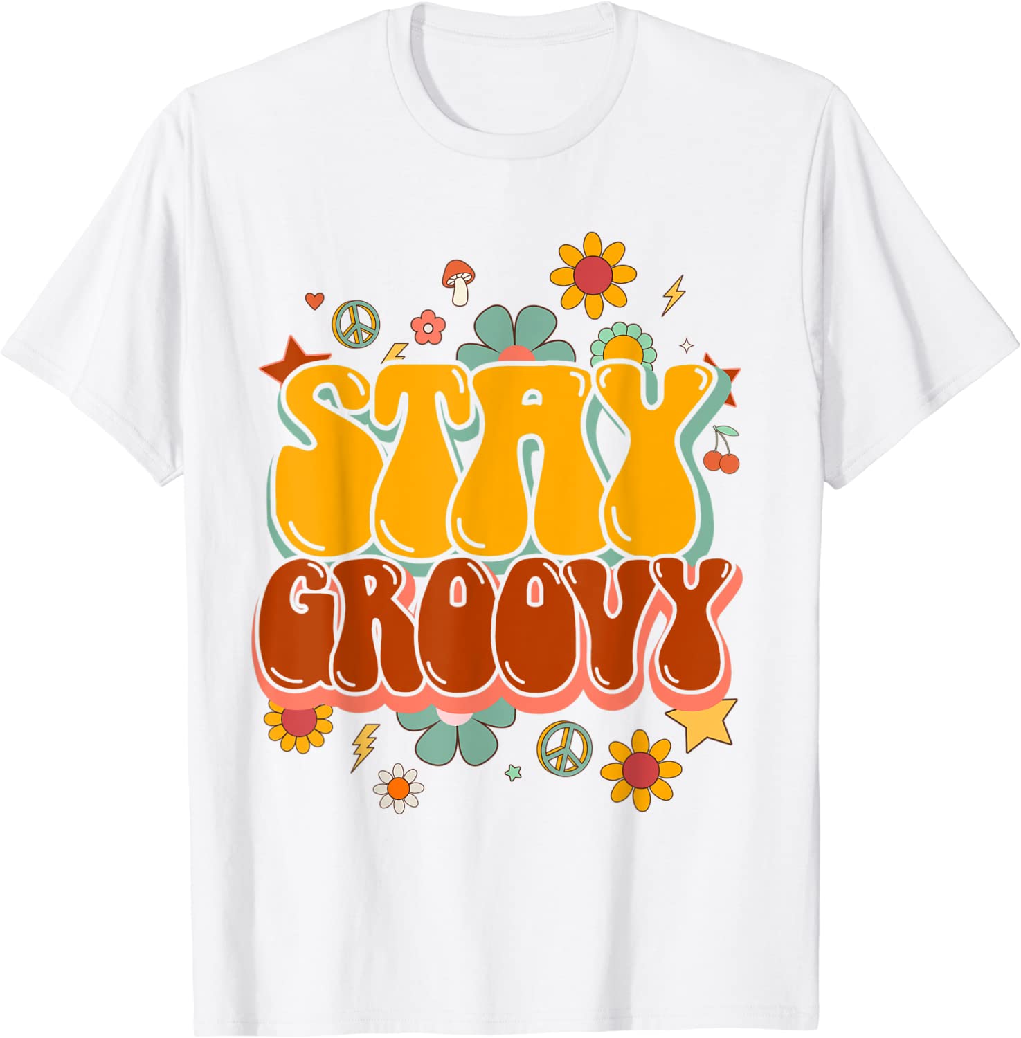 Retro Flowers Peace Stay Groovy Positive Mind Happy Life T-Shirt