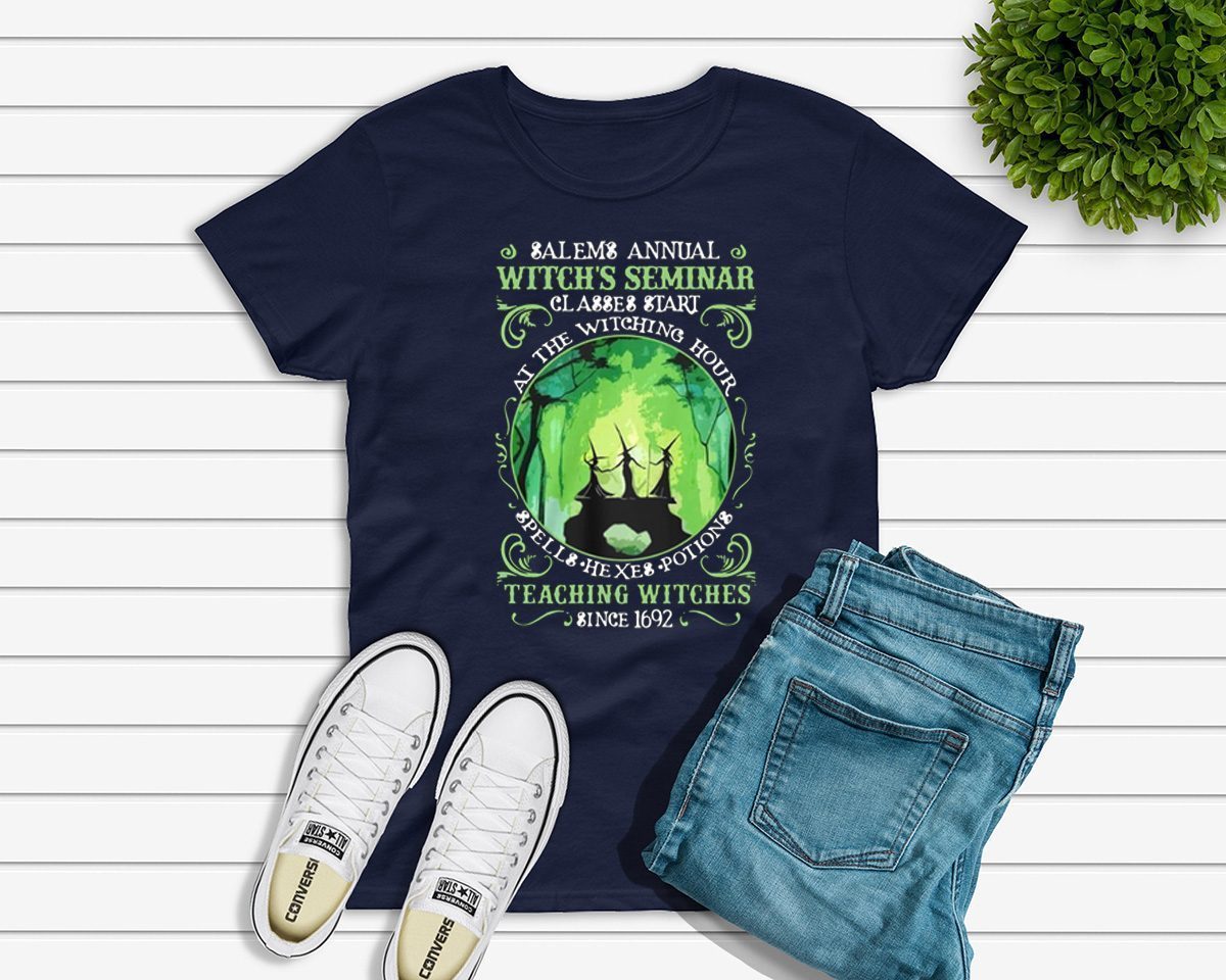 Salem annual witch seminar classes start at the witching hour spells hexes potions teaching witches sine 1692 shirt