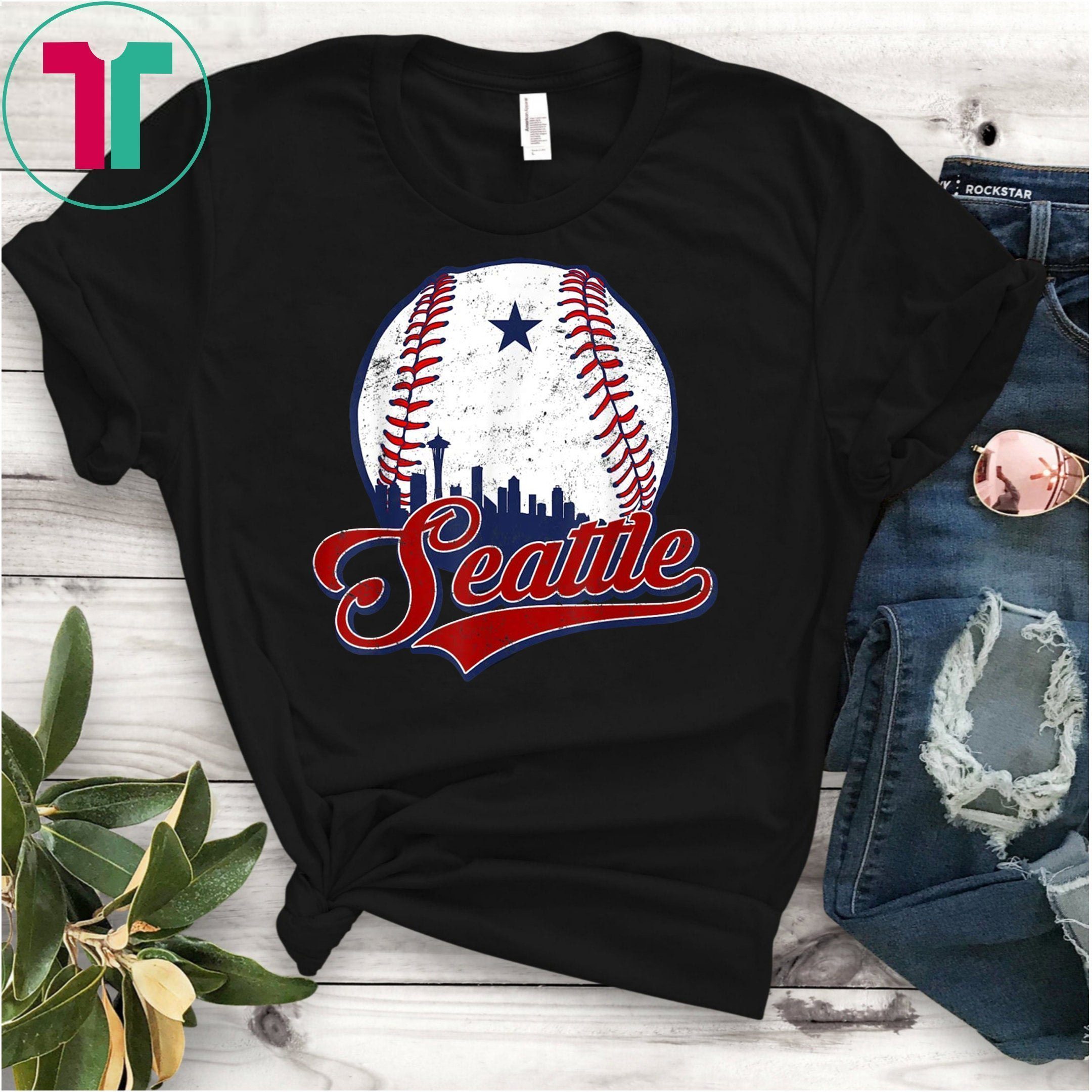 Seattle-Washington Baseball Skyline Silhouette T-shirt