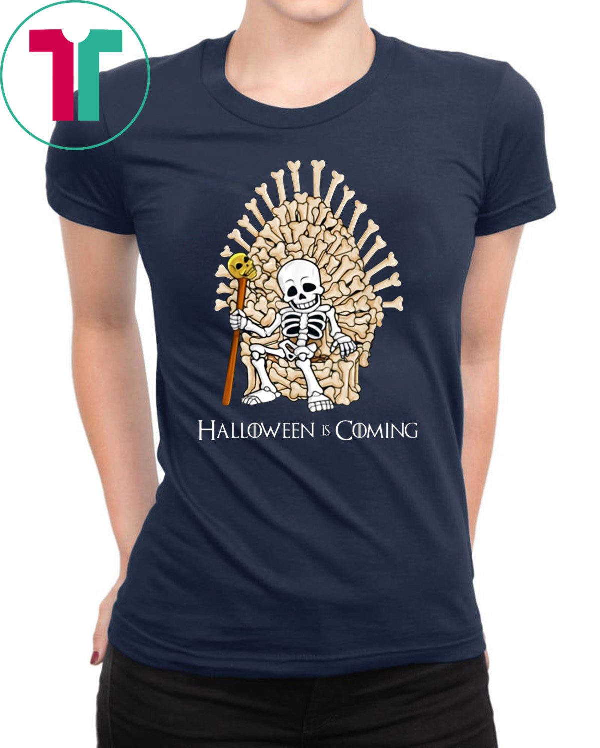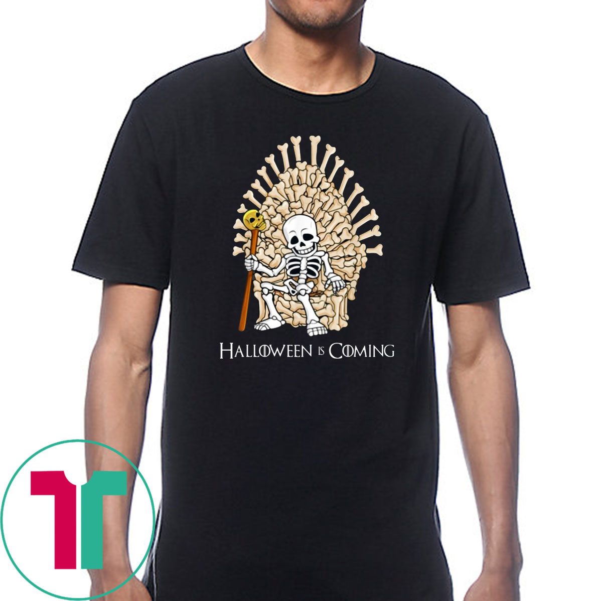 Skeleton Bones Throne Halloween is Coming T-Shirt