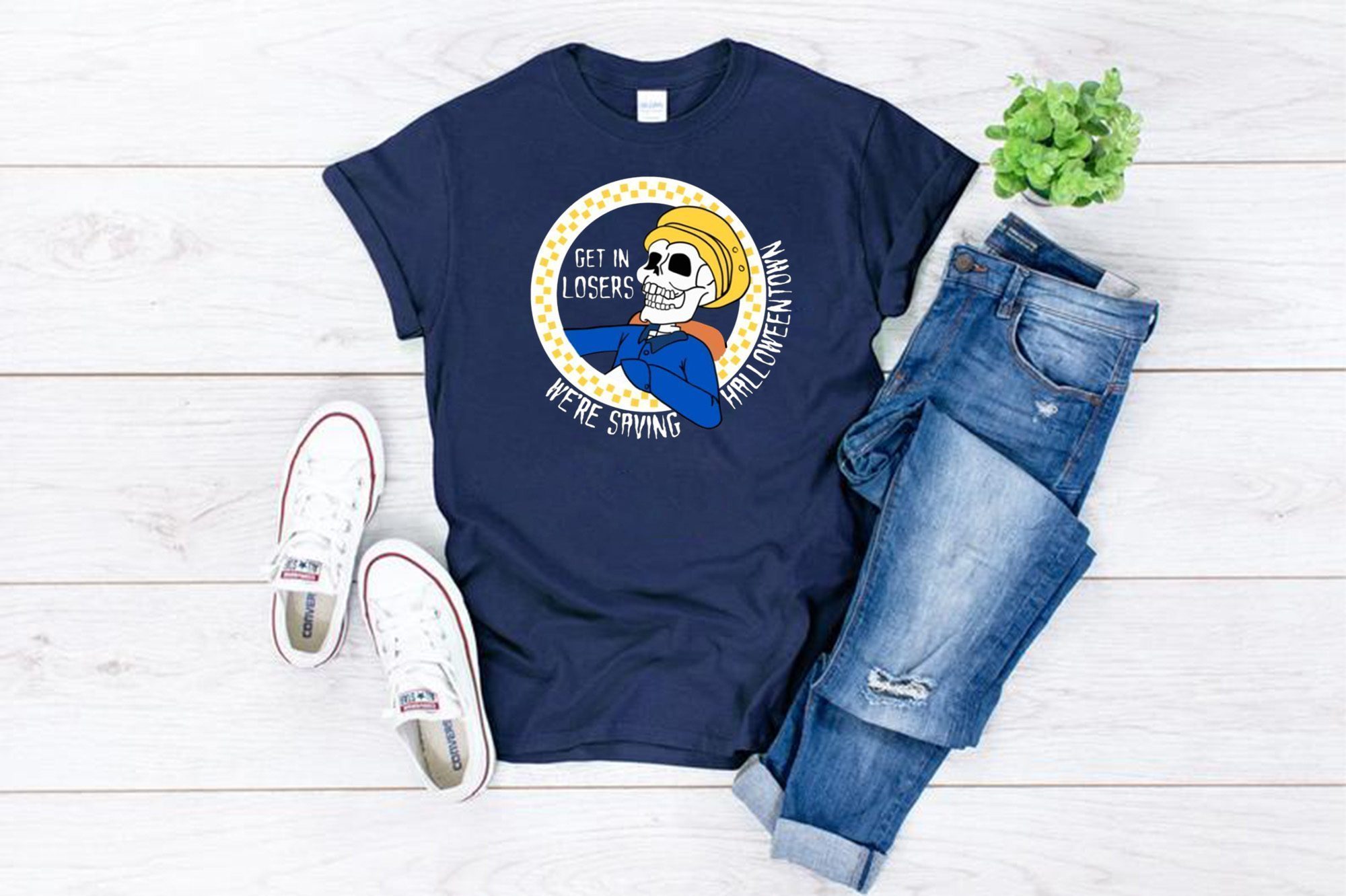 Skeleton Get In Losers We’re Saving Halloween Town T-Shirt