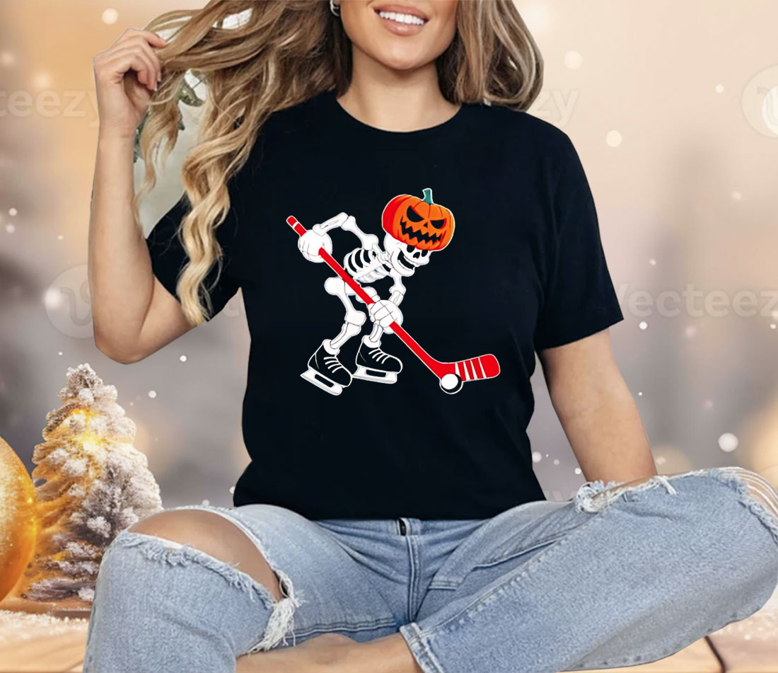 Skeleton Ice Hockey Halloween Shirt