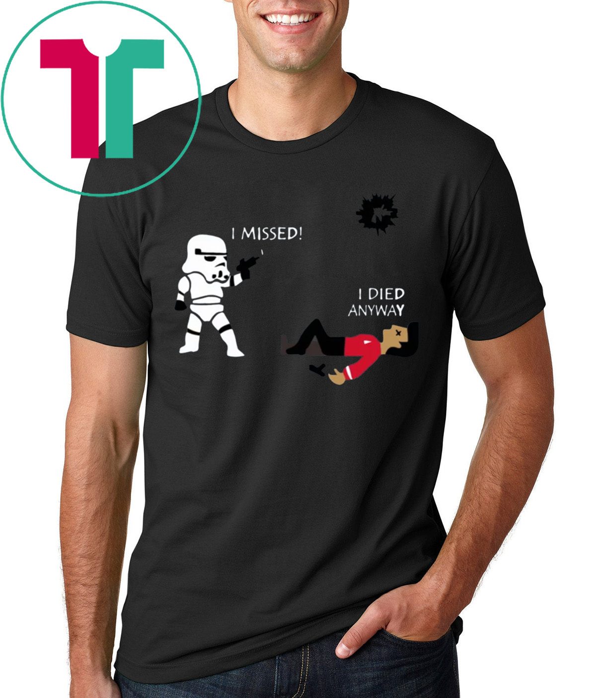Stormtrooper shoots I missed I died anyway funny shirts